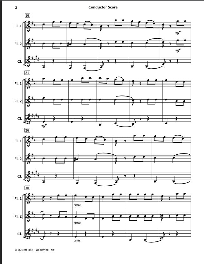 Delight your audience with an instant concert for Woodwind Trios. Includes: A Musical Joke (Mozart), Morning Mood from Peer Gynt (Grieg), and Trumpet Voluntary (Clarke). Ideal for general concerts, recitals, festivals, and special occasions.
