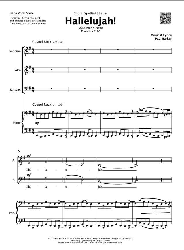 Ignite your choir with Hallelujah! A vibrant rock gospel showstopper featuring sparkling vocal lines and modern piano accompaniment. Accessible and rewarding to learn, this energetic and artistic piece is perfect for celebrations, festivals, and triumphant encores.